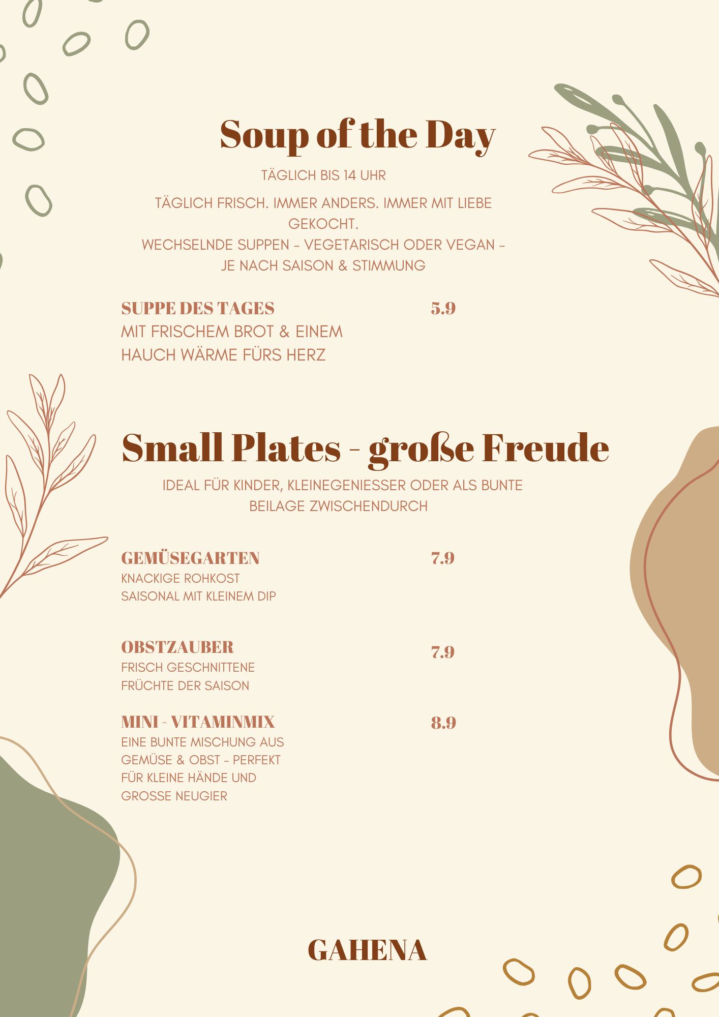 Ein Ort für alle Sinne – mit Liebe zum Detail, handgemachtem Genuss und besonderen Dingen, die Geschichten erzählen. Gahena ist dein Raum zum Ankommen, Durchatmen und Inspirieren lassen. Schön, dass du da bist.